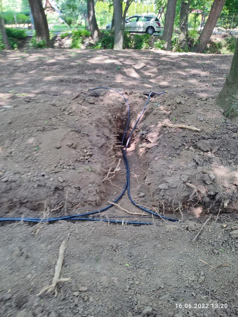 Vyhotovenie novej kabeláže osvetlenia a kamerového systému parku. Dodávka a montáž zvislých stĺpov osvetlenia.