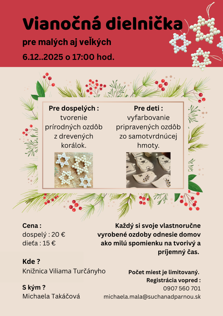 Prihlásiť sa môžete na č. 0907560701 alebo na michaela.mala@suchanadparnou.sk.