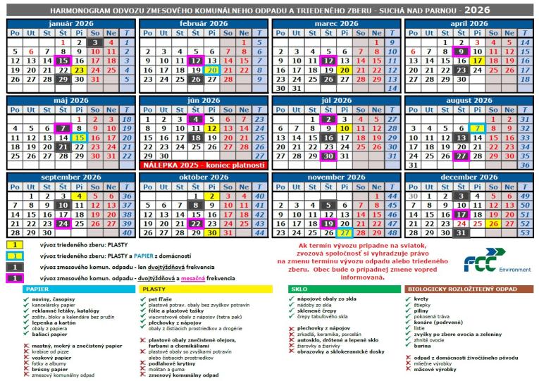 Prvý vývoz zmesového komunálneho odpadu v roku 2026 sa uskutoční v neštandardnom termíne v SOBOTU 3.1.2026. Ďalšie vývozy budú prebiehať ako v r. 2025 v štvrtky.