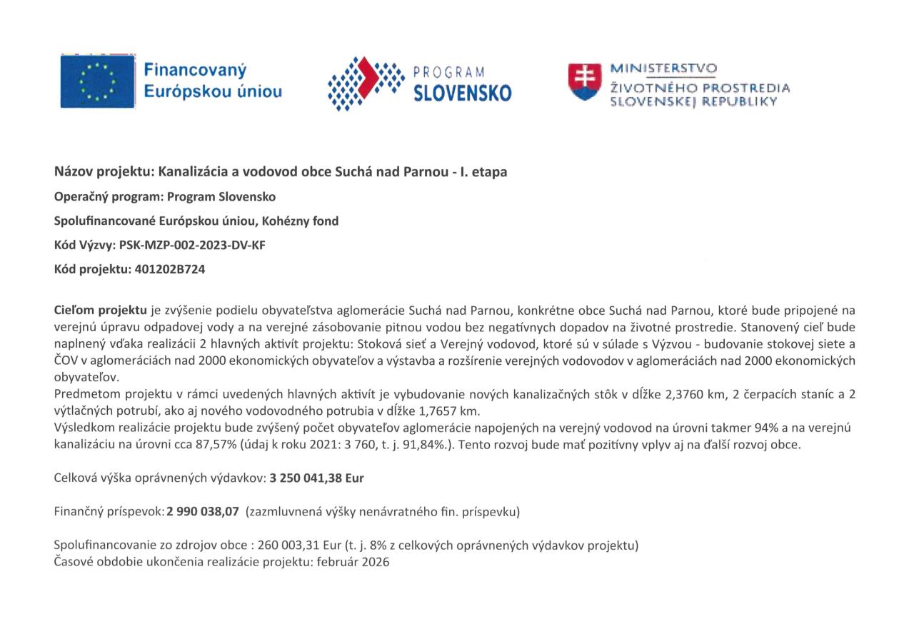 Obec Suchá nad Parnou bola úspešná ako žiadateľ v rámci Žiadosti o poskytnutie nenávratného finančného príspevku v rámci Operačného Programu Slovensko.