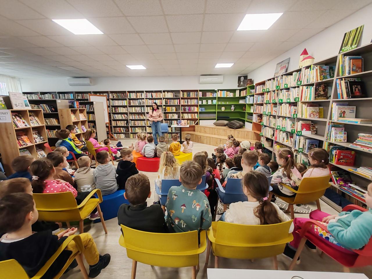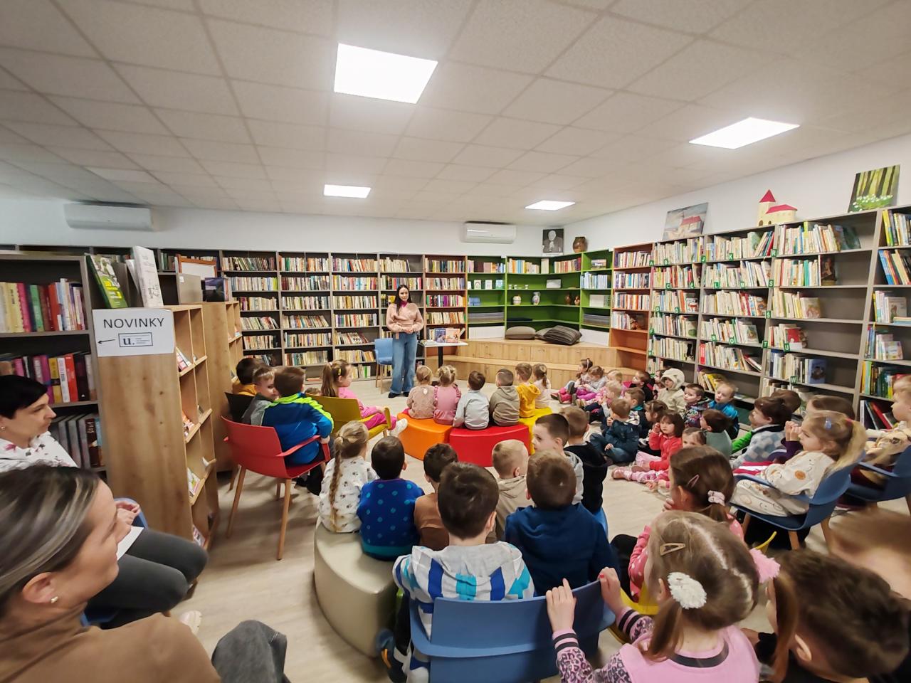 Napriek tomu, že knižnica praskala vo švíkoch. Deti vzorne počúvali a v závere diskutovali o prečítanom príbehu. Ďakujeme pani učiteľkám a vychovávateľkám z materskej škôlky za spoluprácu a každodennú prácu. Veď sú to práve ony, ktoré sa nám v tomto dôležitom období starajú o naše deti.