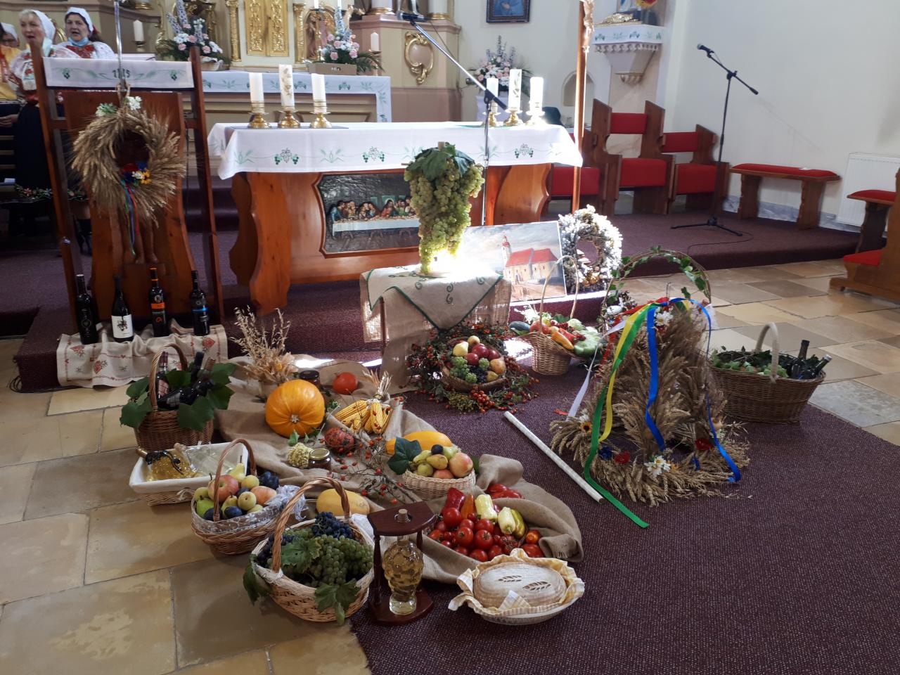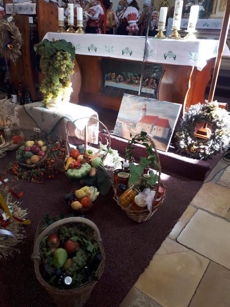 Za úrodu sme sa teda poďakovali na slávnostnej omši v nedeľu 20.9.2020. Kostol sv. Martina vyzdobili šikovné ruky ochotných ľudí z plodov našej zeme – poľnými a lúčnymi kvetmi, ovocím a zeleninou, ktoré darovali naši pestovatelia, vinohradníci a vinári.