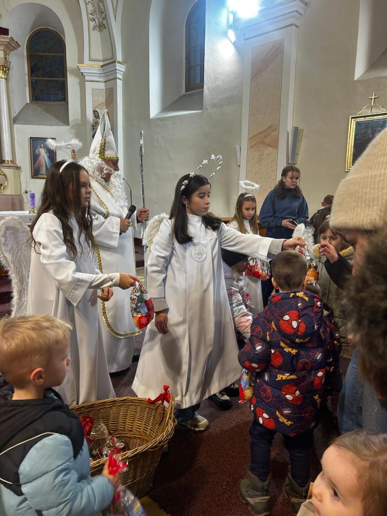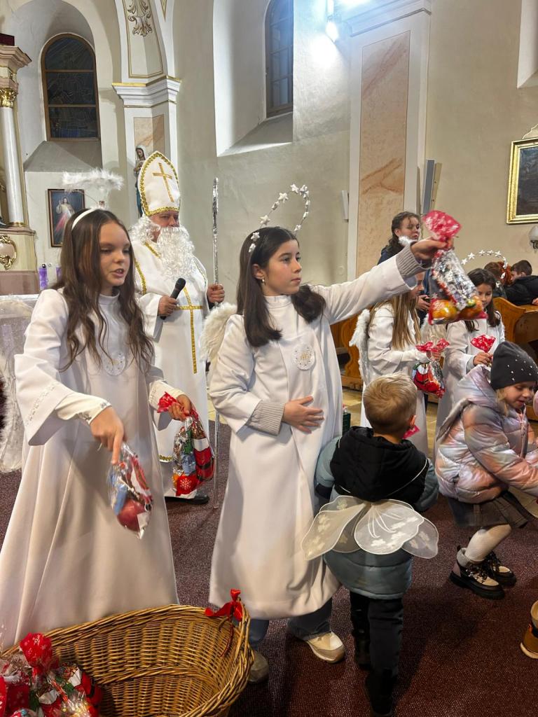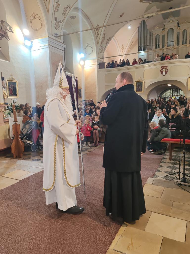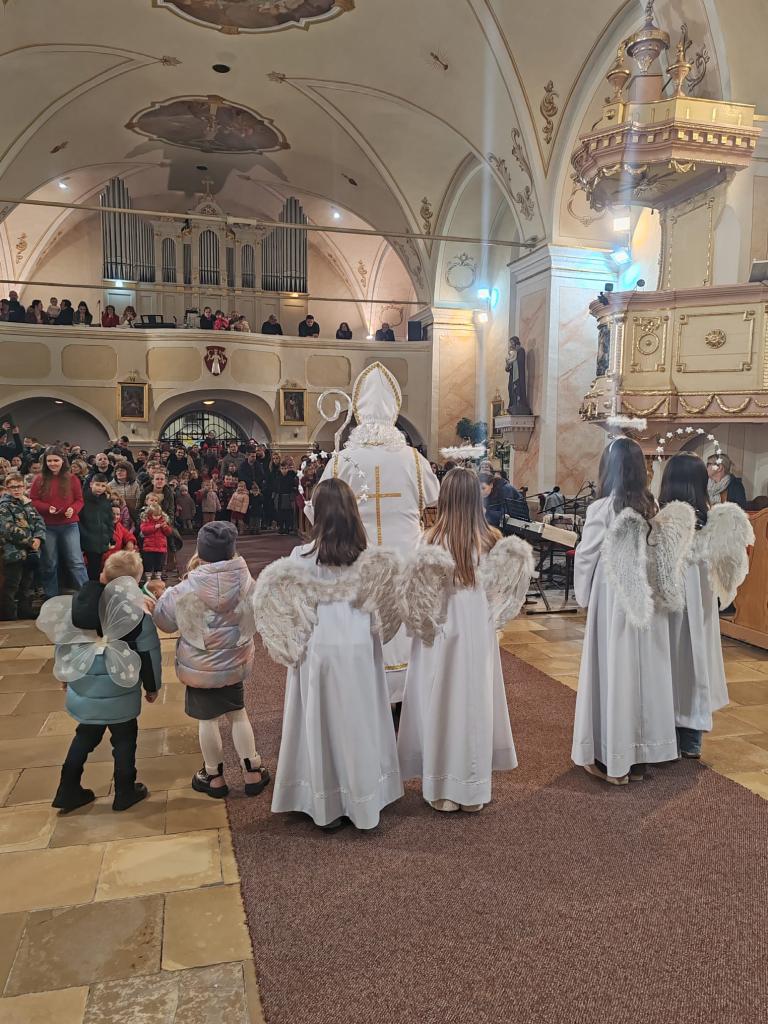 V piatok 5.12.2025 prišiel po roku opäť za našimi deťmi Mikuláš. Po svätej omši v miestnom kostole sv. Martina ho privítal pán farár a Mikuláš deťom o sebe porozprával niečo zaujímavé. Samozrejme, mal pre deti pripravené balíčky s ovocím a sladkosťami.