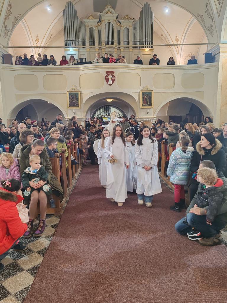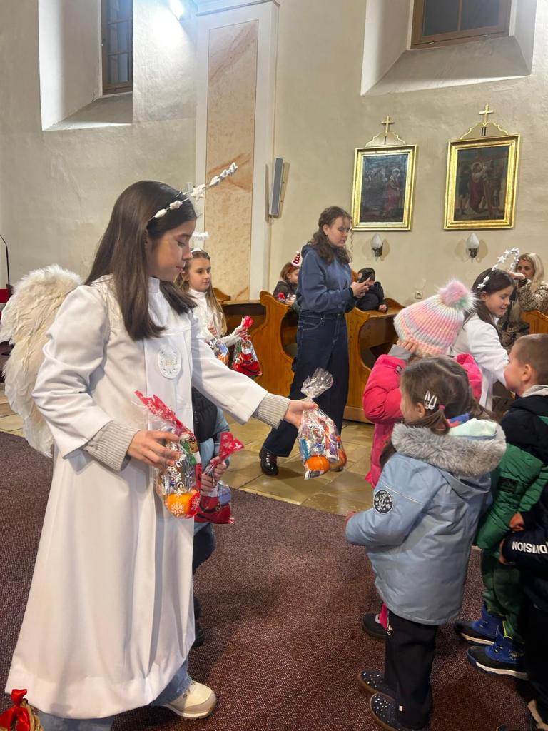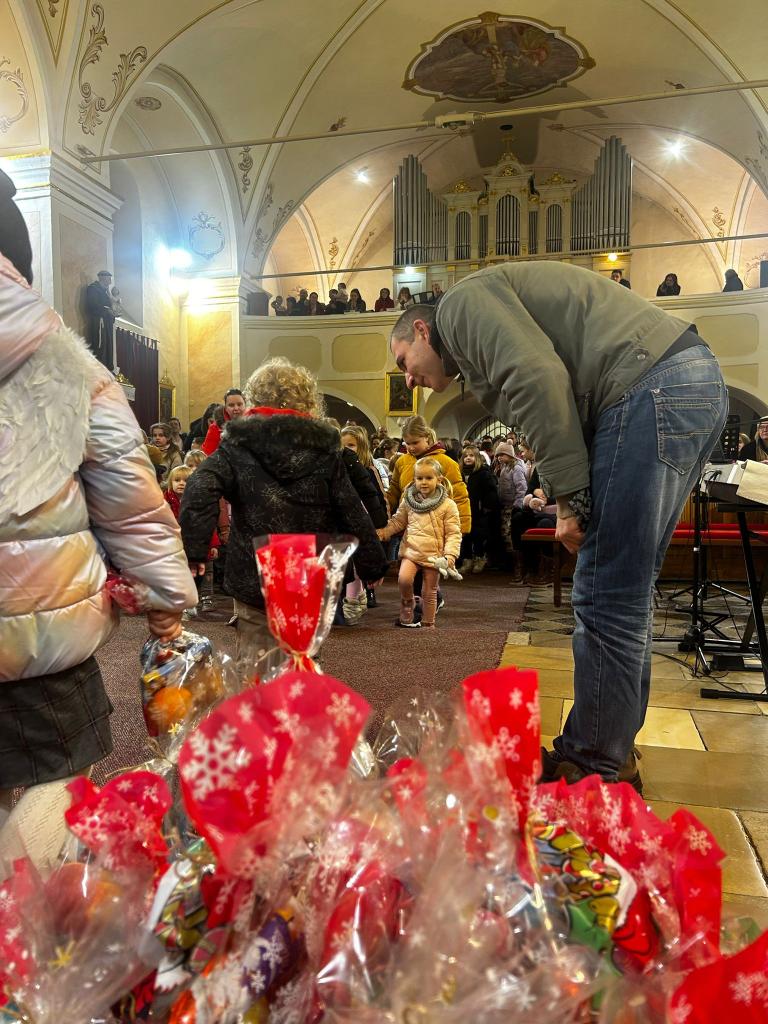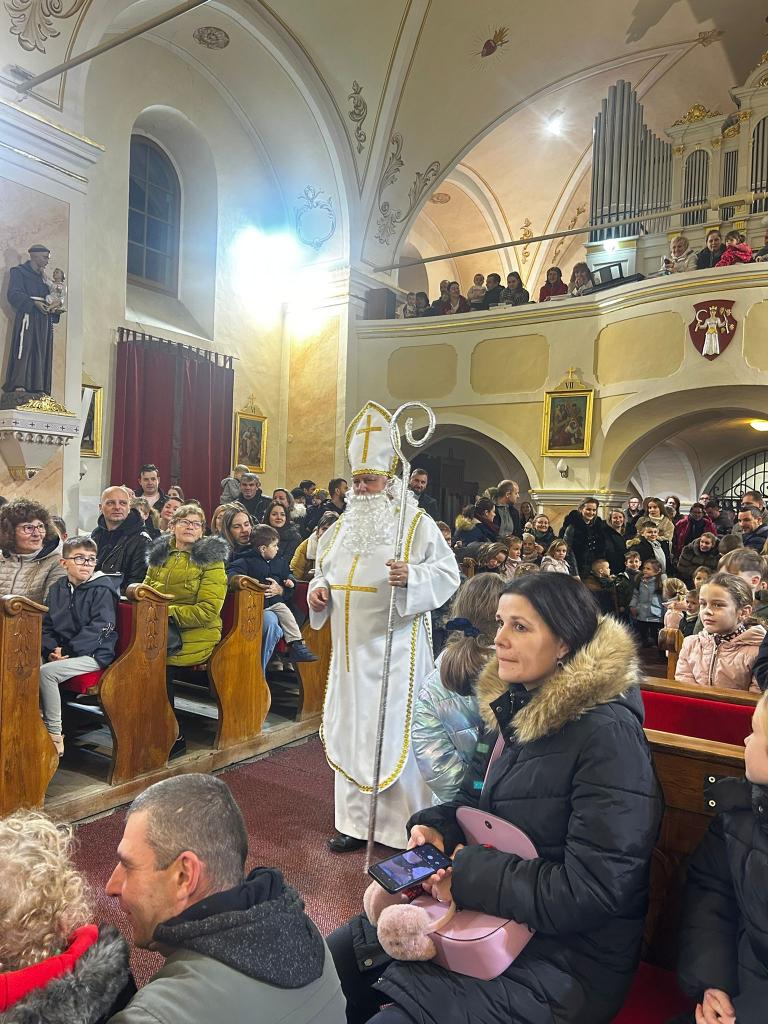 V piatok 5.12.2025 prišiel po roku opäť za našimi deťmi Mikuláš. Po svätej omši v miestnom kostole sv. Martina ho privítal pán farár a Mikuláš deťom o sebe porozprával niečo zaujímavé. Samozrejme, mal pre deti pripravené balíčky s ovocím a sladkosťami.