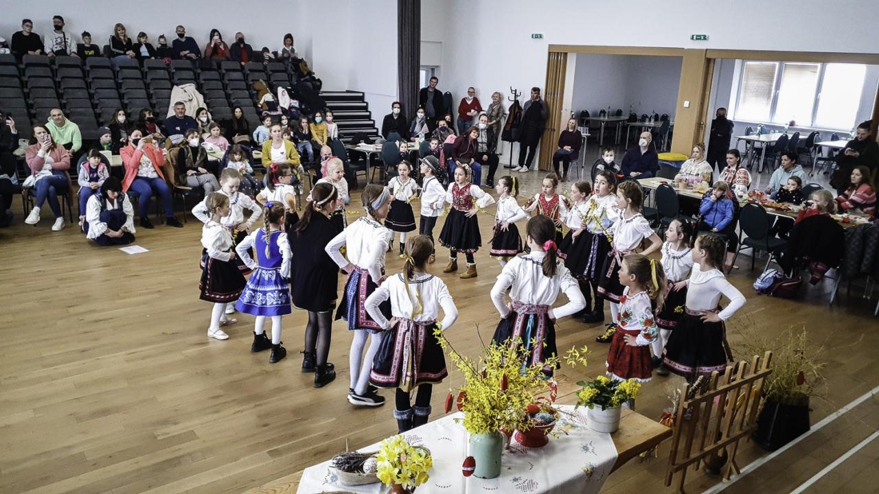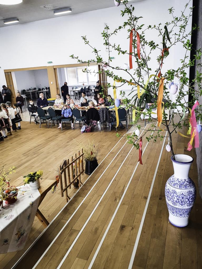 Od kultúrneho domu k potoku na Husacom námestí sa tiahol sprievod, ktorý niesol na čele morenu. Morena bola spálená a hodená do potoka v podaní detí z folklórneho krúžku zo základnej školy. Sprievod sa vydal na čele so symbolickou halúzkou "letečkom" do kultúrneho domu. Súbor pokračoval vo svojom vystúpení v sále. Po ňom sa už všetky deti mohli venovať vyrábaniu veľkonočných ozdôb od výmyslu sveta - maľovať vajíčka akrylovými farbami, lepiť na nich rôzne aplikácie alebo vlnu... P. Eva Frnková učila maľovanie výdušiek technikou horúceho vosku. Deti si mohli vyrobiť tiež rôzne dekorácie z papiera, dreva, filcu... Veľký úspech mala aj škola pletenia šibákov. Vonku si mohli deti pozrieť a pohladkať malé kozičky a húsatká. Vzhľadom na to, že bolo chladno a nemohli byť mláďatká toľko vonku, bola minizoo k dispozícii len krátko.