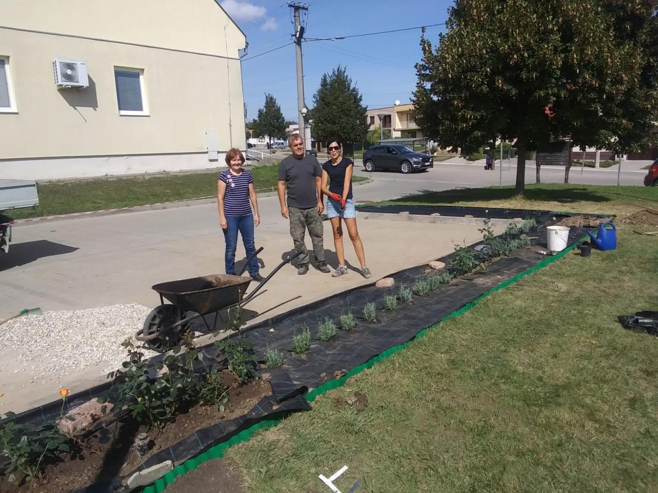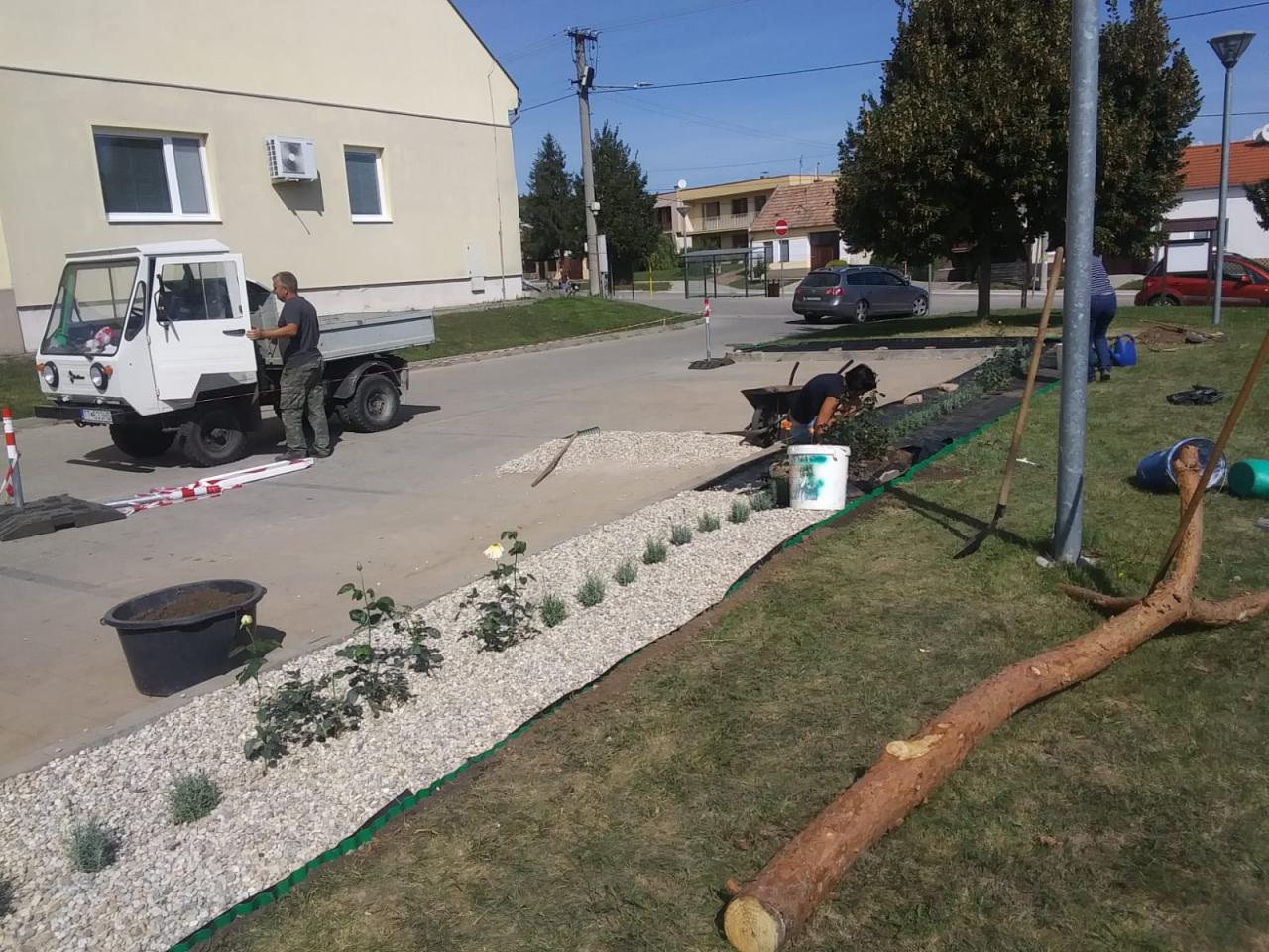 Popri parkovisku pred kultúrnym domom sme vysadili ružový a levanduľový záhon.